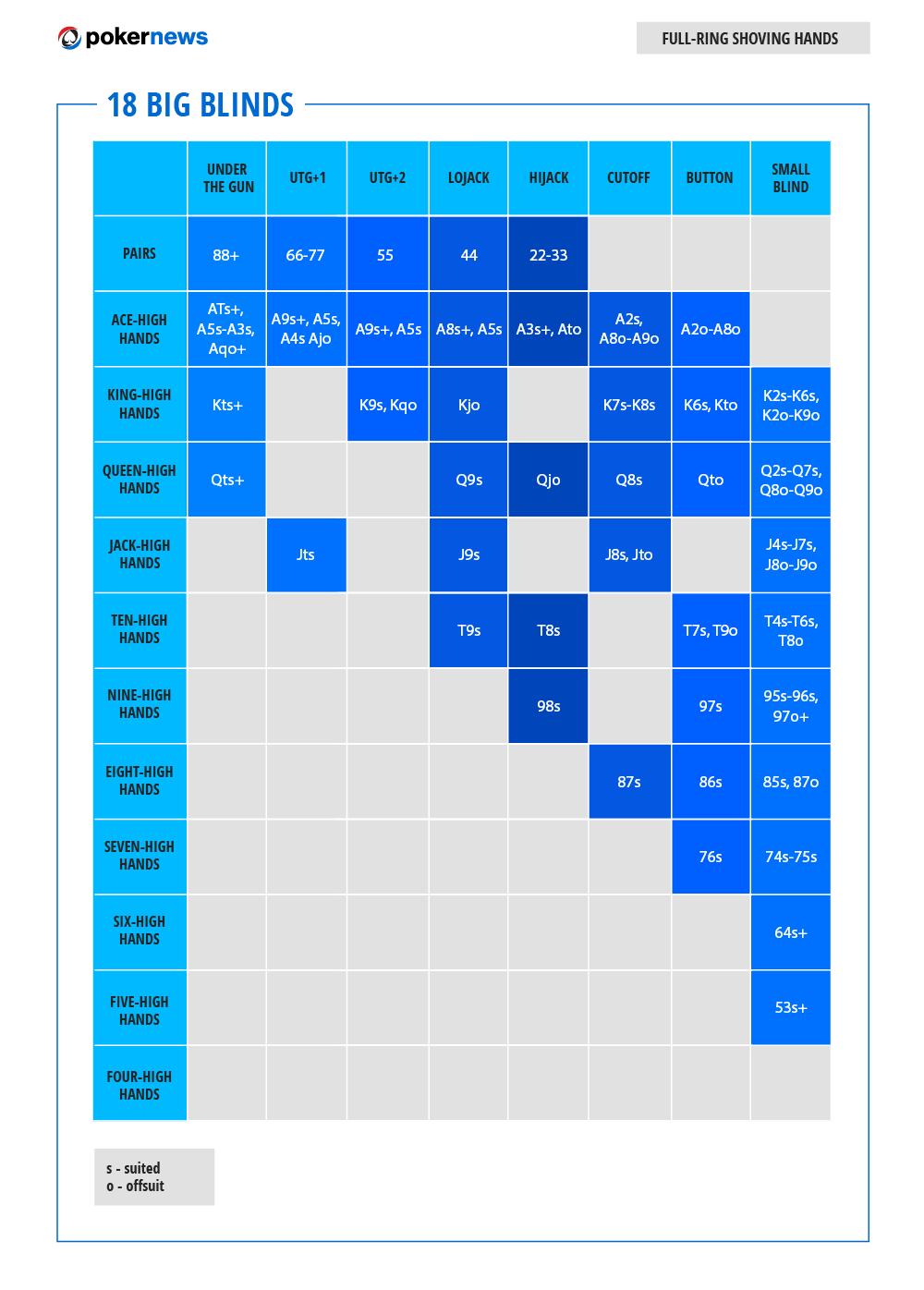 Preflop range charts outline the hands that constitute a winning shoving range.