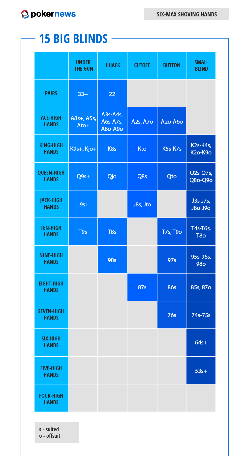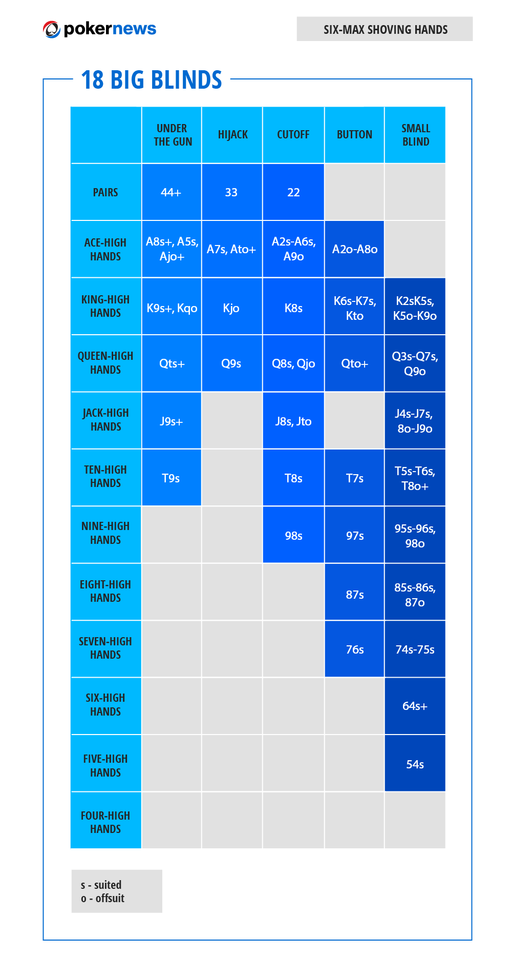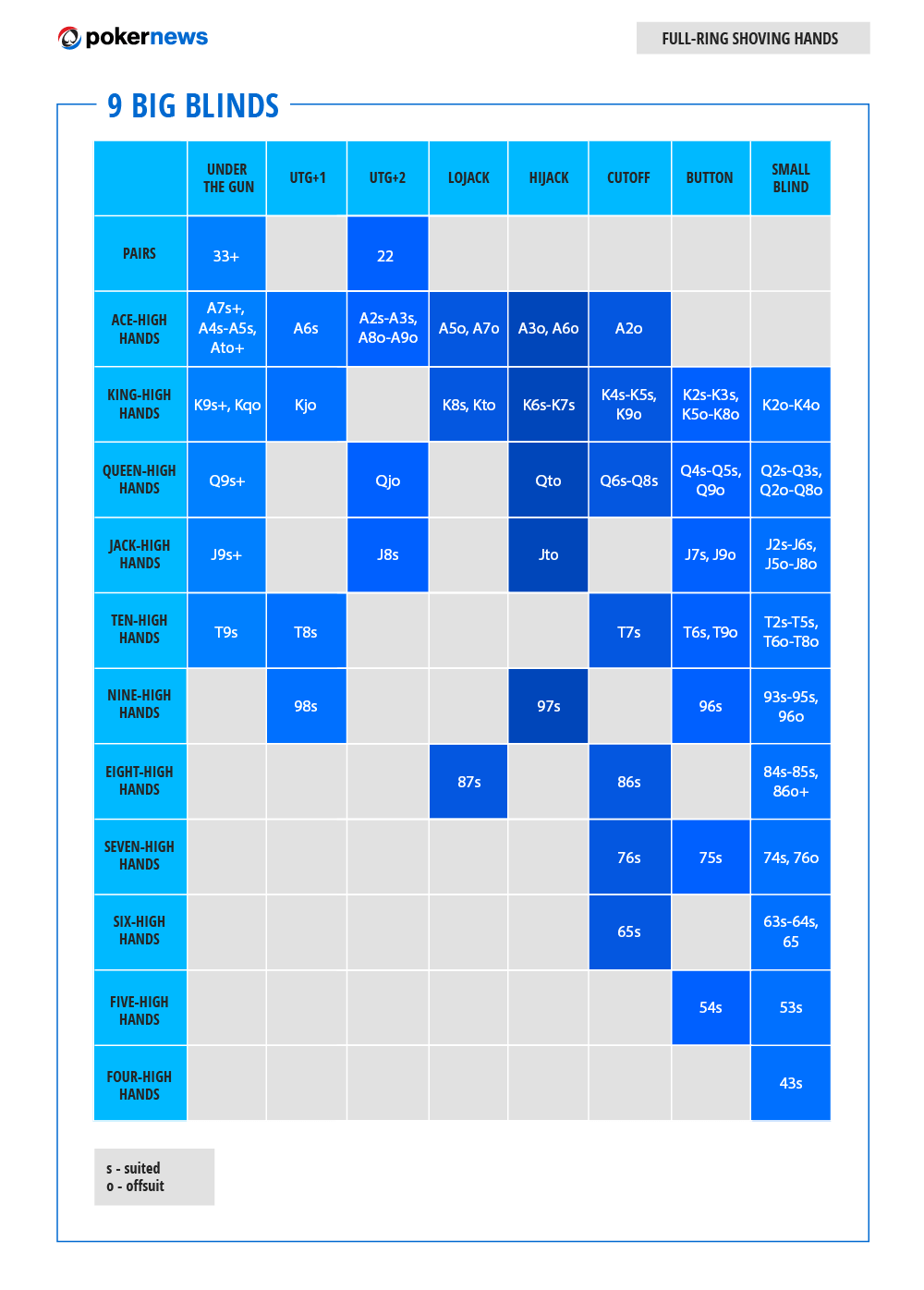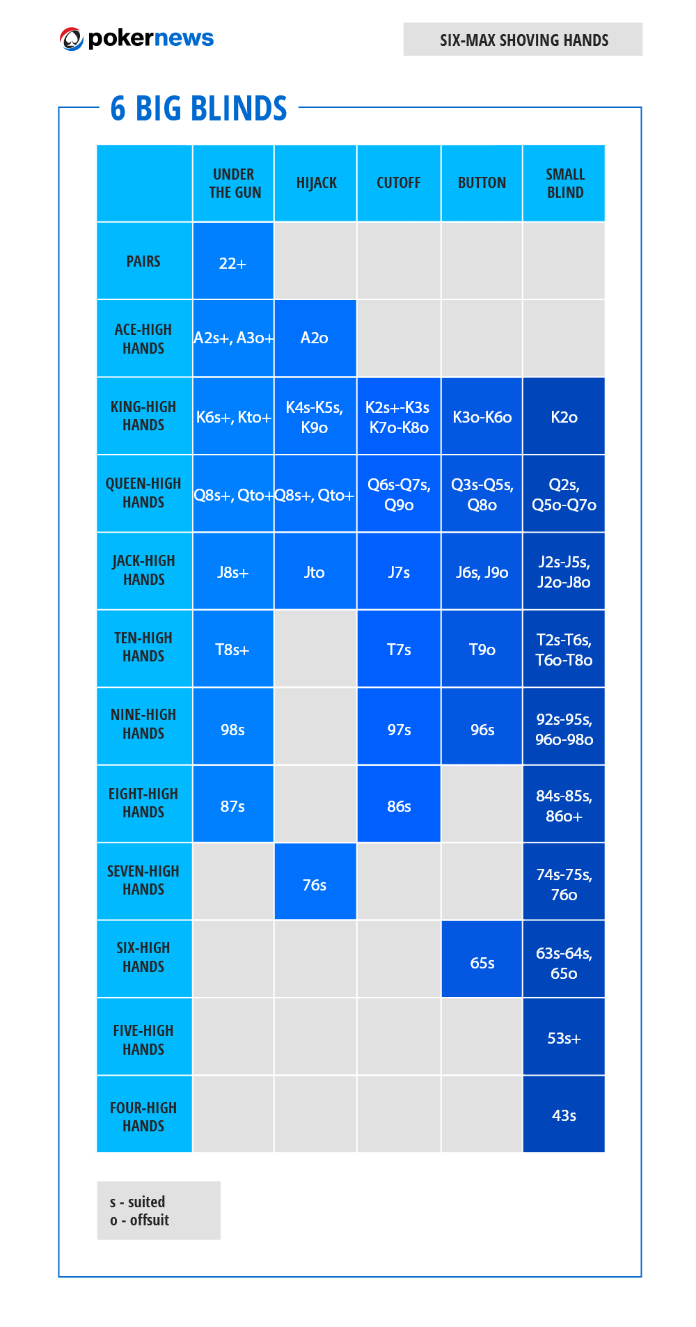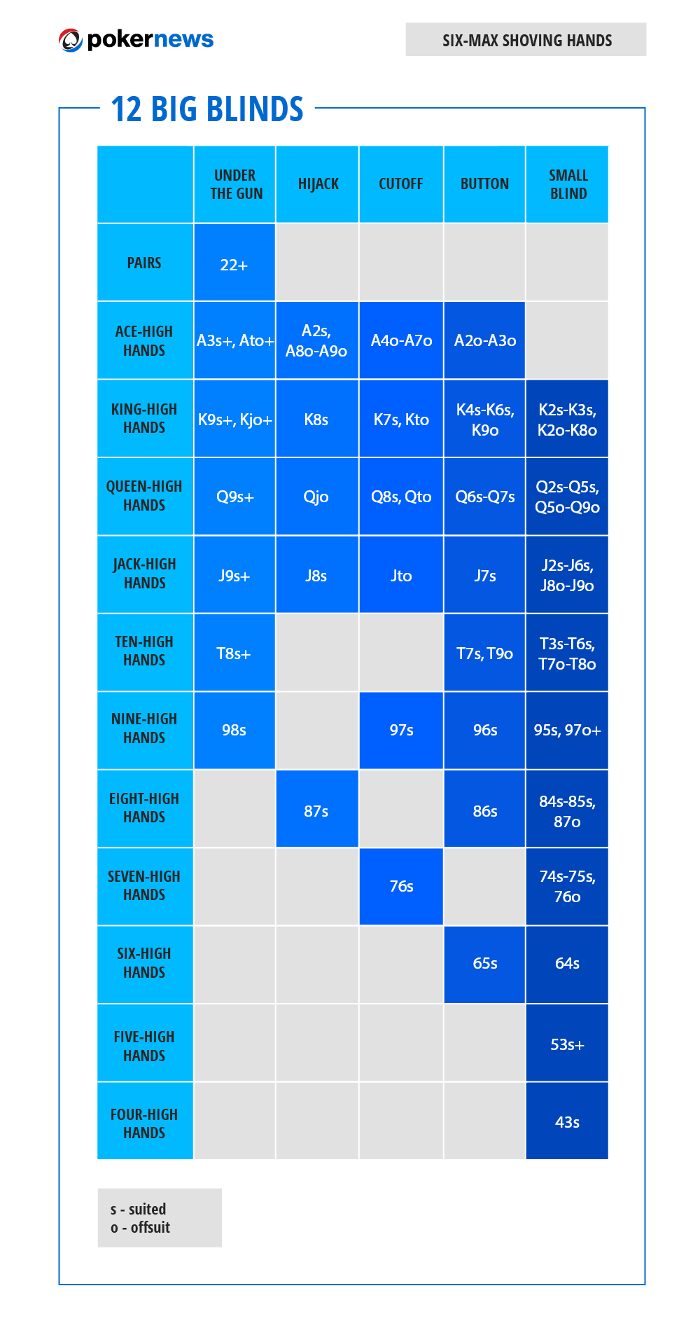 Read on to learn more and find the accompanied printable poker hand ranges chart as a tool you can study to improve your performance when short-stacked.